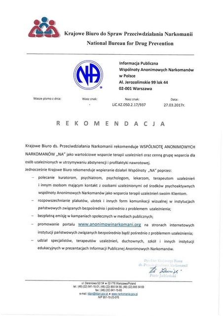 - Rekomendacja dla Służb NA od KBPN